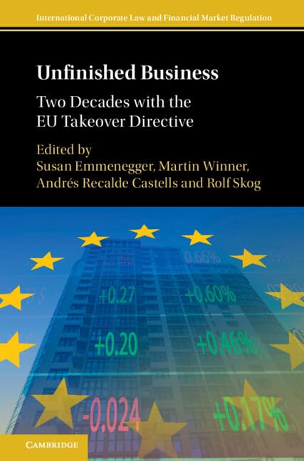 The volume Unfinished Business: Two Decades with the EU Takeover Directive has just been published by Cambridge University Press. The book is co-authored by the European Company law Expert Group (ECLE), including Rolf Skog and Erik Lidman (SCGI). The volume contains a number of articles offering practical insights and forward-looking policy recommendations on European takeover regulation, including perspectives from the particularly active Swedish takeover market:
